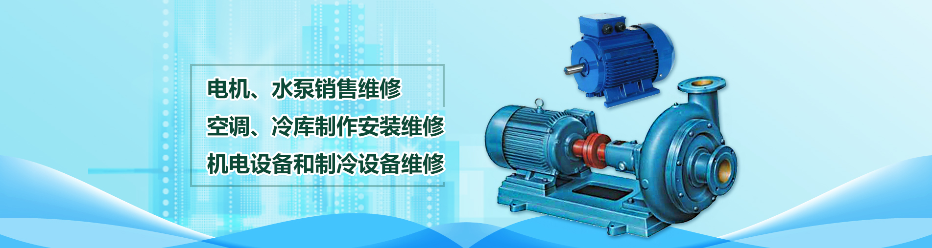 關(guān)鍵詞: 機(jī)電設(shè)備和制冷設(shè)備維修 空調(diào).冷庫制作安裝維修 電機(jī).水泵銷售維修